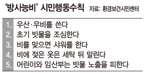 ȯ°æ´ÜüÀΠȯ°æº¸°Ç½Ã¹Î¼¾ÅÍ´Â À̳¯ '¹æ»ç´Éºñ'¿¡ ´ëÇÑ '½Ã¹ÎÇൿ¼öÄ¢'À» ¹ßÇ¥ÇØ, ¡â¹æ»ç´É ³óµµ°¡ ³ôÀº ÃÊ¿ì(óÀ½ ³»¸®´Â ºñ)¸¦ ÇÇÇÒ °Í ¡â±Í°¡ µÚ »þ¿ö¸¦ ÇÒ °Í ¡âÁ¥Àº ¿ÊÀº ¼¼Å¹ÇØ ¸»¸®°í ½Ç³»¿¡ µÎÁö ¸» °Í µîÀ» ±Ç°íÇß´Ù. ÃÖ¿¹¿ë ȯ°æº¸°Ç½Ã¹Î¼¾ÅÍ ¼ÒÀåÀº "»çÀü¿¹¹æ¿øÄ¢¿¡ µû¶ó ÃÖ¼ÒÇÑÀÇ ÁÖÀÇ¶óµµ Áà¾ß Çϴµ¥µµ Á¤ºÎ´Â 'ºÒÇÊ¿äÇÑ ³ëÃâÀ» ÇÇÇ϶ó'´Â Ç¥ÇöÁ¶Â÷ ²¨¸®°í ÀÖ´Ù"¸ç "¿øÀü È®´ë Á¤Ã¥¿¡ ÁöÀåÀÌ »ý±æ±îºÁ ±Ç°í¸¦ ÀÚÁ¦ÇÏ´Â °ÍÀº ¾Æ´ÑÁö Àǽɽº·´´Ù"°í ¸»Çß´Ù.